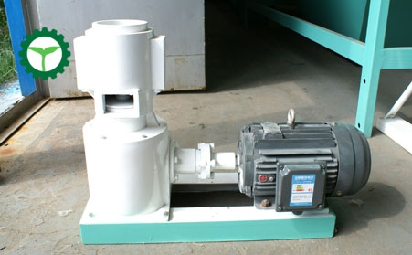 带动皮带轮传递到主轴及平模擦动压轮使压轮与模板之间有大于80℃的磨擦温度,是以机械圆运动为基础,粉料通过高温糊化凝结,在压轮的挤压下,从平模孔中挤出,经过切刀的分段,最后从下料口中滚出颗粒饲料,电动机及柴油机为动力,颗粒饲料自然冷却后才可包装。